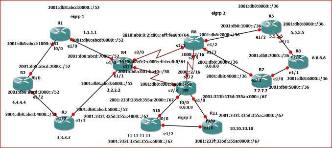 MPLS, BGP, EIGRP implementation on GNS3 with IPV6 (Spring 2017)